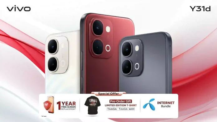 ভিভো ওয়াই৩১ডি -এর ৬/১২৮ জিবি ভেরিয়েন্টের দাম ২৪,৯৯৯ টাকা, ৮/১২৮ জিবি ২৬,৯৯৯ টাকা এবং ৮/২৫৬ জিবি ৩১,৯৯৯ টাকা। আগামী ১ থেকে ৪ মার্চ পর্যন্ত ফোনটির প্রি-অর্ডার চলবে। এর মধ্যে প্রি-অর্ডার করলেই ঈদ উপলক্ষে ভিভো ও তাগা/তাগা ম্যান-এর বিশেষ পার্টনারশিপে উপহার হিসেবে থাকছে লিমিটেড এডিশন তাগা ম্যান টি-শার্ট (শর্তসাপেক্ষ)।