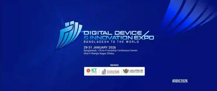 তথ্য ও যোগাযোগ প্রযুক্তি বিভাগ, বাংলাদেশ হাই-টেক পার্ক কর্তৃপক্ষ এবং বাংলাদেশ কম্পিউটার সমিতি (বিসিএস)-এর যৌথ উদ্যোগে আগামী ২৮-৩০ জানুয়ারি ২০২৬ তারিখে বাংলাদেশ-চীন মৈত্রী সম্মেলন কেন্দ্র (বিসিএফসিসি), শেরেবাংলা নগর, ঢাকা-এ অনুষ্ঠিত হতে যাচ্ছে “ডিজিটাল ডিভাইস অ্যান্ড ইনোভেশন এক্সপো-২০২৬”।
