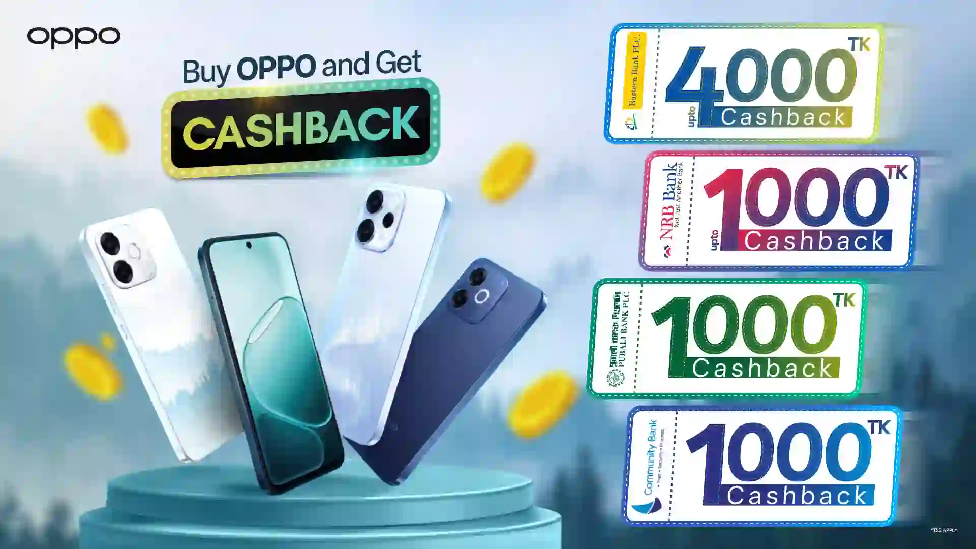 উৎসবকে আরও আনন্দময় করতে অপো গ্রাহকরা দেশের শীর্ষস্থানীয় ব্যাংক পার্টনারদের মাধ্যমে বিশেষ ক্যাশব্যাক সুবিধা পাবেন। নির্ধারিত অপো স্মার্টফোন কিনলে গ্রাহকরা ইস্টার্ন ব্যাংক পিএলসি (ইবিএল) কার্ড ব্যবহার করে সর্বোচ্চ ৪,০০০ টাকা পর্যন্ত ক্যাশব্যাক পেতে পারবেন। অন্যদিকে এনআরবি ব্যাংক কার্ডধারীরা সর্বোচ্চ ১,০০০ টাকা এবং কমিউনিটি ব্যাংক কার্ডধারীরা ফ্ল্যাট ১,০০০ টাকা ক্যাশব্যাক উপভোগ করতে পারবেন। এছাড়াও, অপো রেনো১৫ এফ ক্রয়ের ক্ষেত্রে পূবালী ব্যাংকের কার্ড ব্যবহার করলে গ্রাহকরা সর্বোচ্চ ১,০০০ টাকা পর্যন্ত বিশেষ ক্যাশব্যাক সুবিধা পাবেন, যা ঈদ উপলক্ষে স্মার্টফোন আপগ্রেড করতে আগ্রহীদের জন্য বাড়তি সুবিধা যোগ করবে।