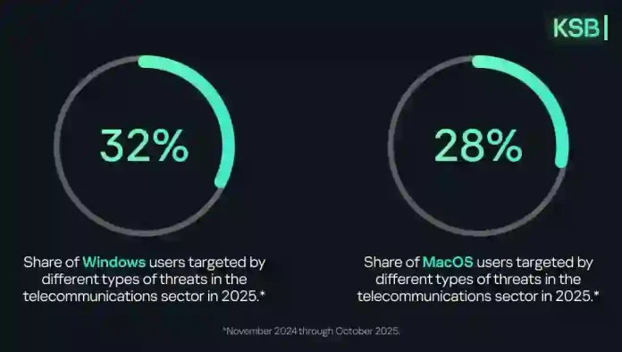 ক্যাসপারস্কি সিকিউরিটি নেটওয়ার্কের তথ্য টেলিকম খাতে সাইবার ঝুঁকির ব্যাপকতা স্পষ্টভাবে তুলে ধরেছে। নভেম্বর ২০২৪ থেকে অক্টোবর ২০২৫ সময়কালে ১২.৭৯ শতাংশ ব্যবহারকারী ওয়েবভিত্তিক সাইবার হুমকির মুখে পড়েছেন এবং ২০.৭৬ শতাংশ ব্যবহারকারী ডিভাইসভিত্তিক হুমকির শিকার হয়েছেন। একই সময়ে বিশ্বজুড়ে ৯.৮৬ শতাংশ টেলিকম প্রতিষ্ঠান র্যানসমওয়্যার হামলার শিকার হয়েছেন। ২০২৫ সালে এই হুমকির প্রভাব টেলিকম খাতের ৩২.১৮ শতাংশ উইন্ডোজ ব্যবহারকারী এবং ২৭.৮১ শতাংশ ম্যাকওএস ব্যবহারকারীর ওপর পড়েছে, অর্থাৎ বিভিন্ন প্ল্যাটফর্মেই সাইবার অপরাধ টেলিকম খাতে আর্থিক ও পরিচালনাগত ক্ষতির ঝুঁকি তৈরি করে চলেছে।